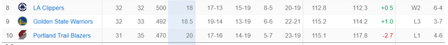 勇士队吞下三连败,勇士距离西部第十的开拓者实际上也只剩下1.5个胜场,难道说在库里复出前勇士就要成为西部第十了吗?