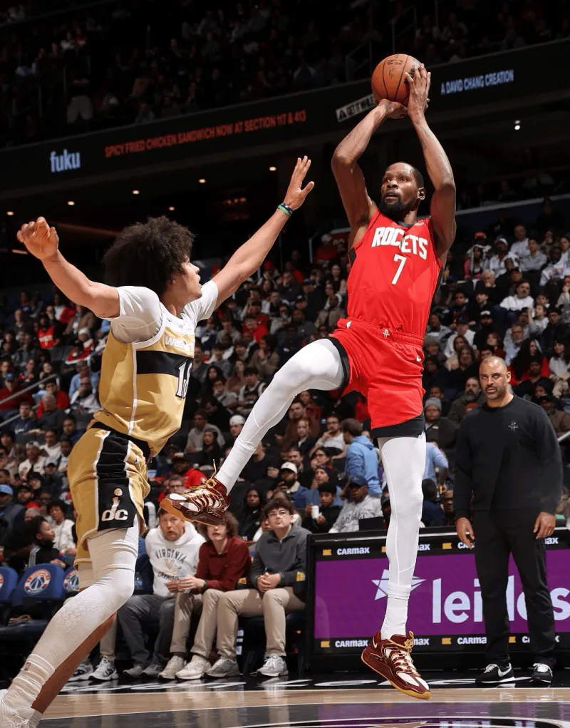本场比赛,火箭队球员凯文-杜兰特出战37分钟,投篮15中8,三分球6中3,罚球11中11,得到30分7篮板1助攻1盖帽。